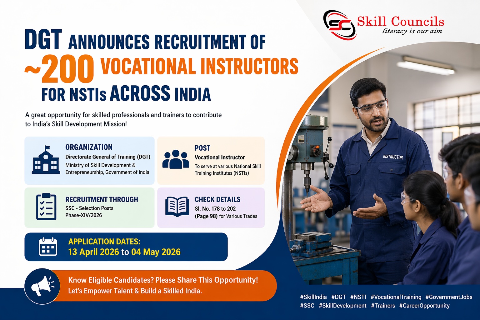 DGT Announces Recruitment of ~200 Vocational Instructors for NSTIs Across India Through SSC